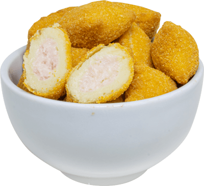 2 kg -Massa cozida recheada com a combinação deliciosa de muçarela e requeijão. Empanada com farinha especial, garantindo crocância e maciez.